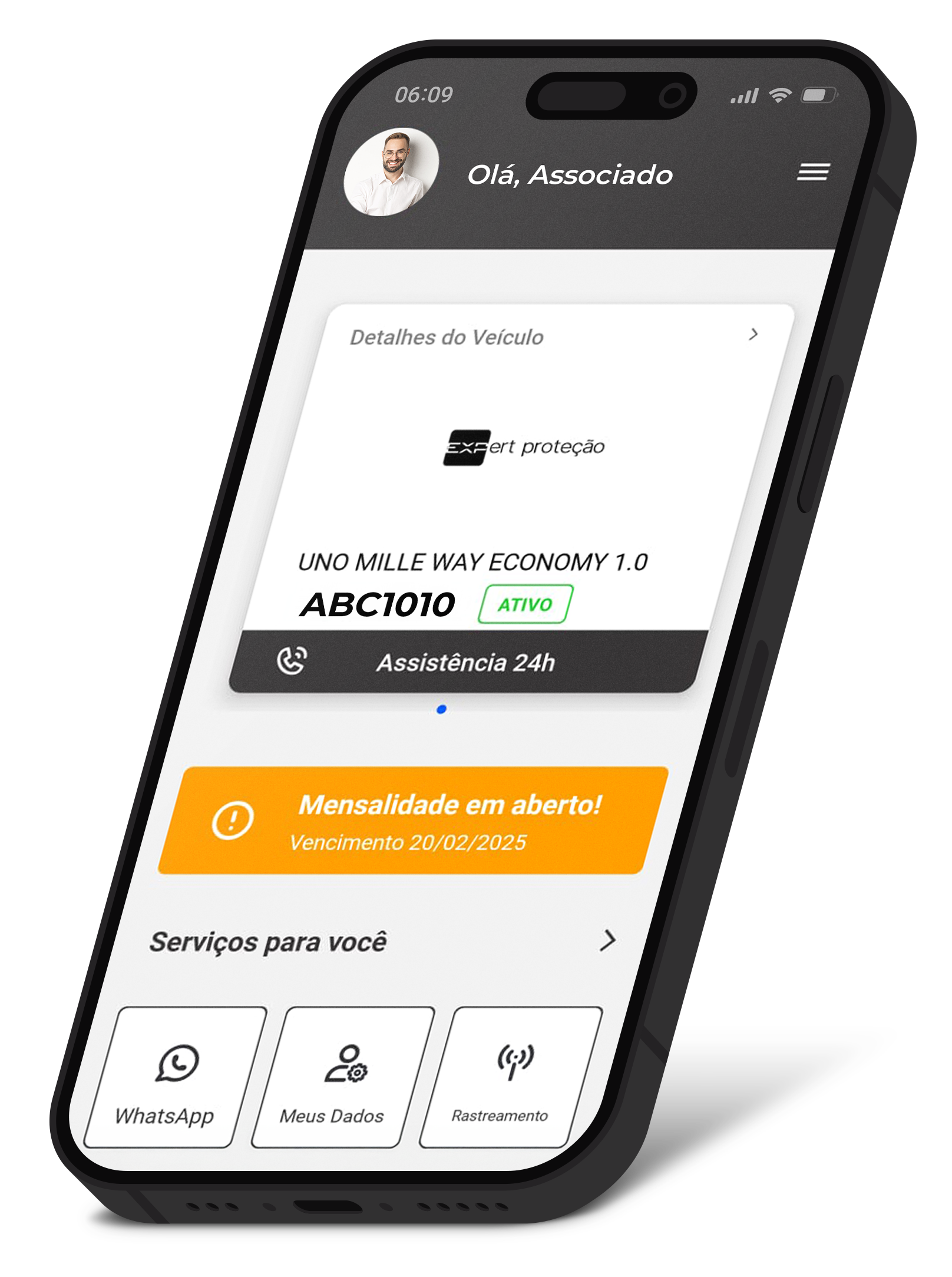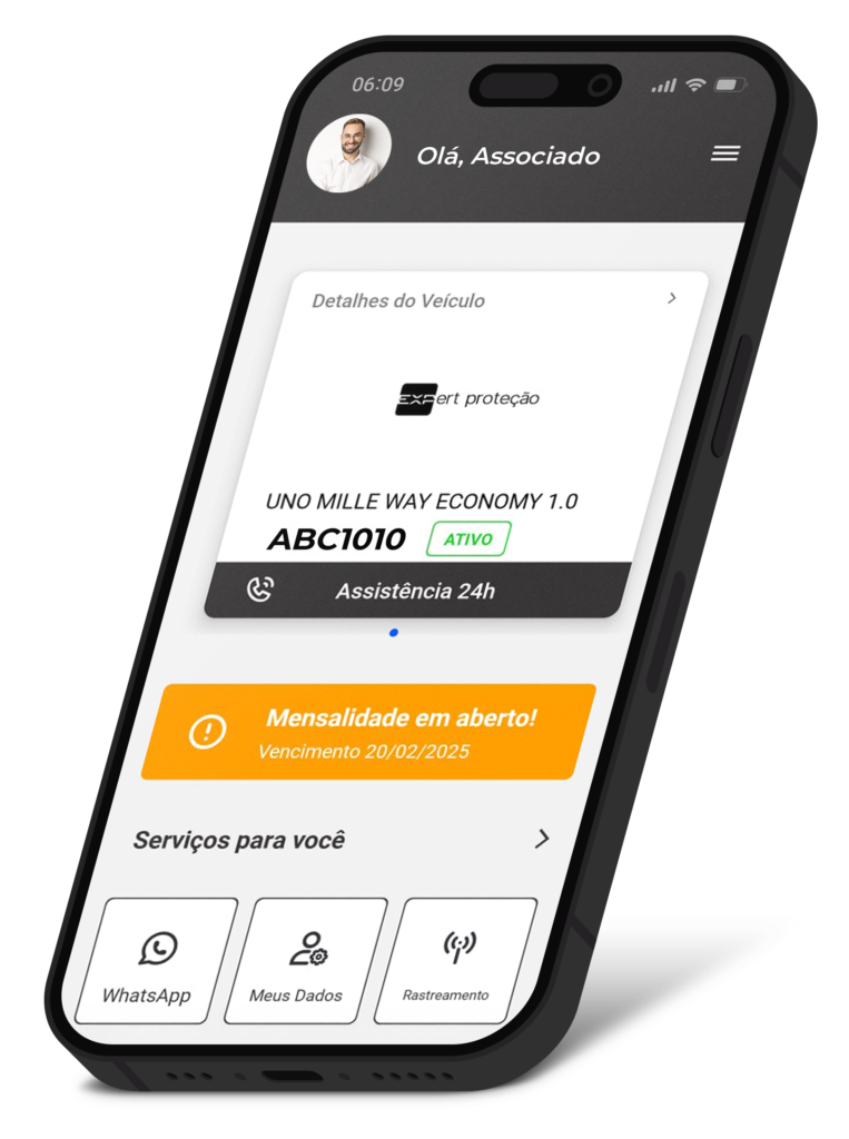 Com o aplicativo da Expert Proteção, você gerencia sua proteção veicular de forma fácil e rápida. Consulte seus dados, acompanhe a assistência 24h, acesse boletos, faça reservas e tenha suporte sempre que precisar. Tudo isso direto do seu celular!